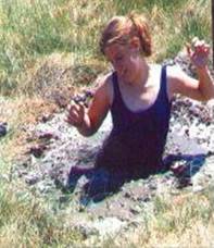 a small mud bog, Barbara pressed her hands on the outside perimeter of the bog